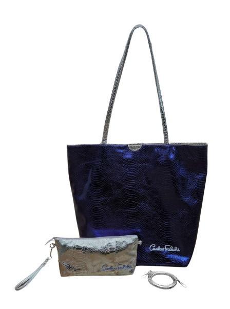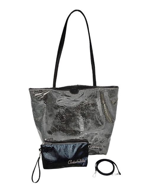 Each piece is meticulously hand-stitched, reflecting the enduring artistry of Carlos Falchi's designs with modern enhancements including a spacious interior boasting a dedicated, large pocket. Adding to its versatility, the Vegan Python Tote includes a detachable wristlet bag that can be used in three distinct ways: securely attached within the main tote, carried as an elegant wristlet, or transformed into a stylish crossbody, adapting effortlessly to your needs. The Vegan Python Tote was designed for the conscious consumer with the modern lifestyle in mind and is a testament to timeless style and functionality.
